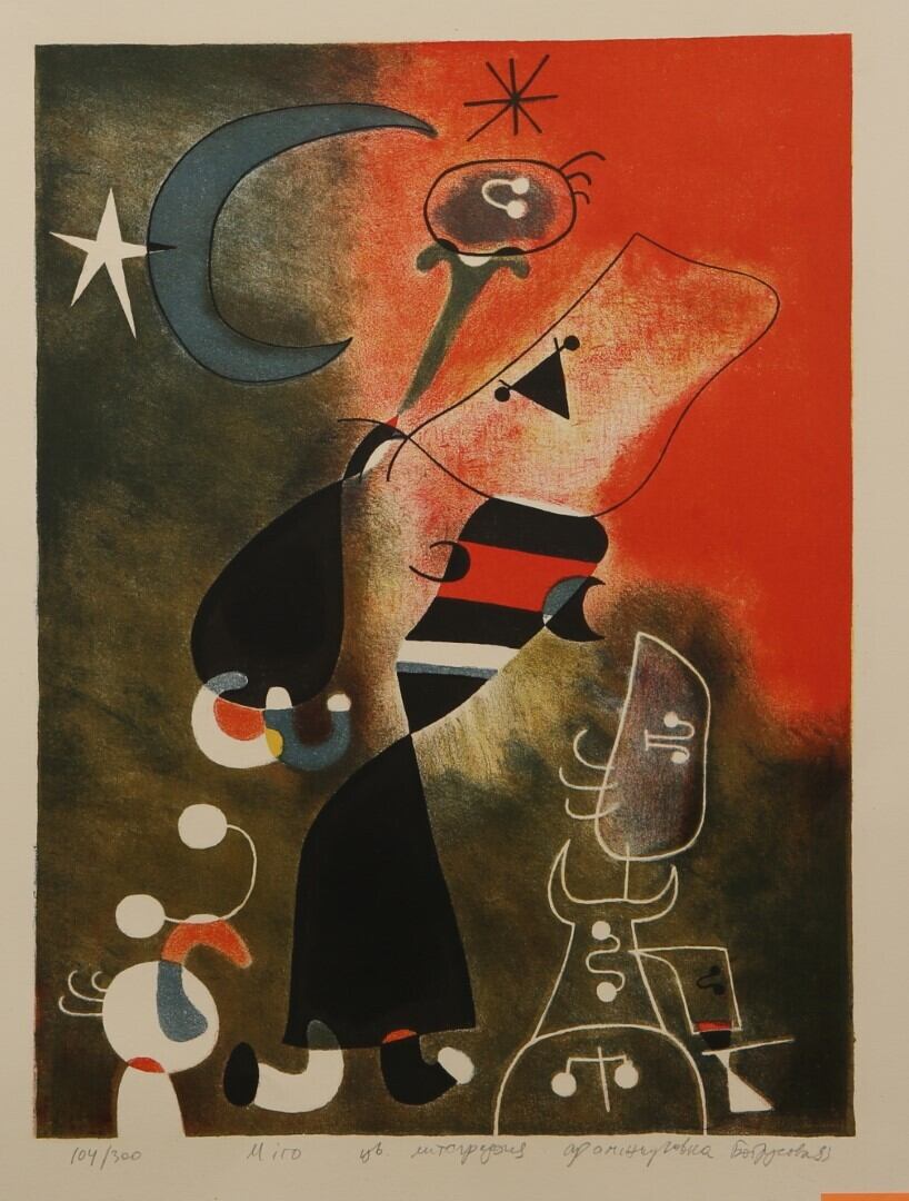 №.79『ミロ模写 夜の散歩』ボブルソヴァ リトグラフ版画 40㎝×30㎝