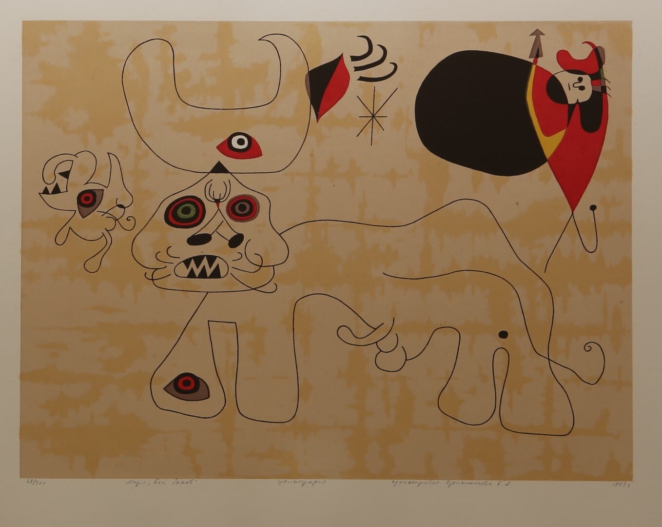 №.84『ミロ模写 闘牛』シェルコノゴヴァ リトグラフ版画 30㎝×40㎝